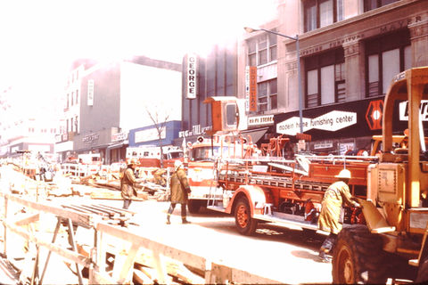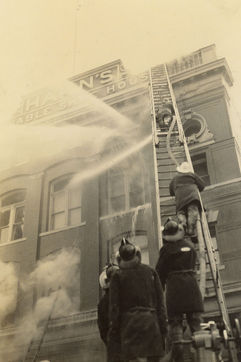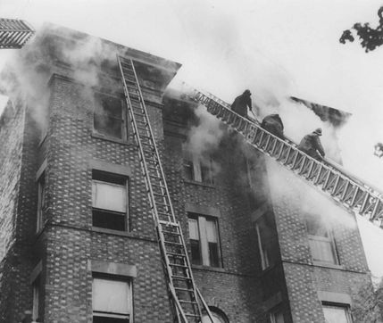 These images and videos demonstrate the evolution of the DC Fire Department’s fire suppression and rescue techniques over the course of its over 150-year history, as the field of fire science itself progressed and became more sophisticated. Throughout these same years, the Department’s apparatus and equipment improved, although there were periods of financial strain when operational resources and staffing were reduced. In the first half of the century, members fought fires without masks or radios, with non-fire-resistant uniforms, and with much heavier hose that would need to be hung up and dried after fires and then placed back to the apparatus. Until February 1992, the Department continued to use two-piece engine companies – one pumper and one wagon – staffed with five members. Ladder trucks were staffed by six members.