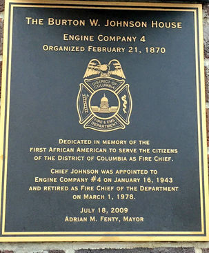 The Department’s first African American fire chief was Burton Westbrooke Johnson, who was born in Philadelphia, Pennsylvania and moved to Washington, DC in his youth. He was appointed to Engine Company 4 on January 16, 1943, and also served in the US Army during World War II. After returning to the DC Fire Department, he became the first Black Sergeant, Black Lieutenant, and Black Captain-Commander in the Fire Prevention Division. He also was the first Black Battalion Fire Chief and first Black Fire Marshal in the Department. While Fire Marshal, he established innovative fire prevention, education, and community outreach programs, including smoke alarm give-away programs that resulted in significant decreases in fire fatalities in Washington, DC. In 1973, Mayor Washington appointed him Fire Chief. He served in that role until March 1, 1978. Chief Johnson passed away in 2007. On July 18, 2009, DC Mayor Adrian Fenty dedicated Engine 4 in memory of Chief Johnson.